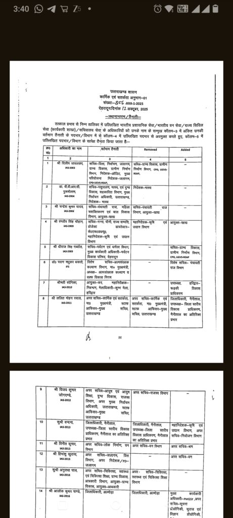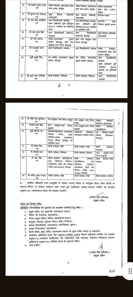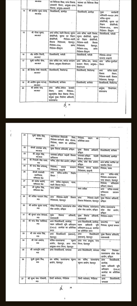 उत्तराखंड में व्यापक प्रशासनिक फेरबदल हुआ है। सरकार ने आईएएस, पीसीएस अधिकारियों समेत अन्य कई अधिकारियों के तबादले कर दिए हैं।