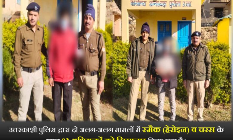 ड्रग्स फ्री देवभूमि मिशन तथा नशामुक्त अभियान के अतंर्गत *पुलिस अधीक्षक उत्तरकाशी, श्रीमती कमलेश उपाध्याय(IPS)* का नशा तस्करों पर एक्शन लगातार जारी है। पुरोला पुलिस की टीम द्वारा दो अलग-अलग मामलों में स्मैक (हेरोइन) व चरस के साथ 02 अभियुक्तों को गिरफ्तार किया गया है।